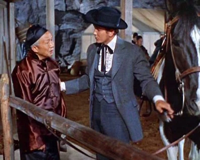 Joe takes his horse over to the Chinese section of town and meets Hop Sing's father, Hop Ling who runs a laundry. He takes a rose from Hop Ling's bush and heads back to town.