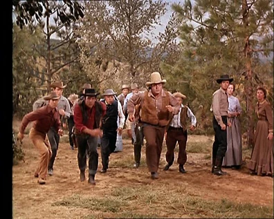 The next morning the Cartwrights are searching and see the Pardo gang being led toward them. Joe's riding up front and Sam brings up the rear. Seems they all misjudged Sam after all.